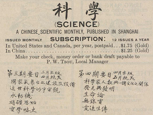 [75]Yuan R. Chao, “Science Society’s Attempt to Translate Scientific Terms.” CSM 10:7 (April 1915), p. 454.