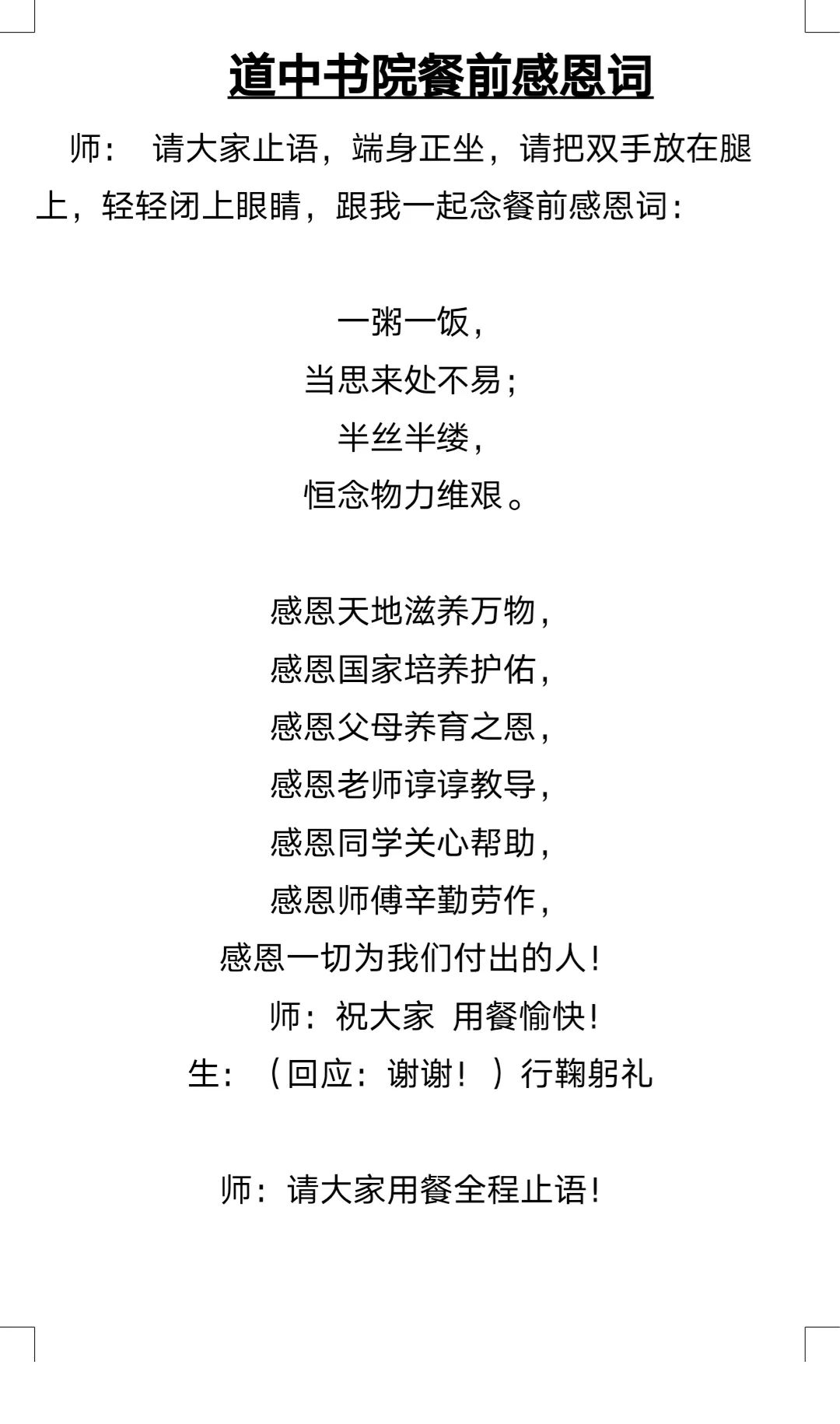 三四个小时的课程结束,该用餐了。餐前感恩环节,感恩一切为我们付出的人!