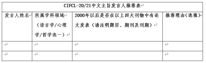 (1)如您强烈推荐其他您认为学术造诣深厚的学者,也请下载并填写下表,发送至beihangcifcl@163.com
