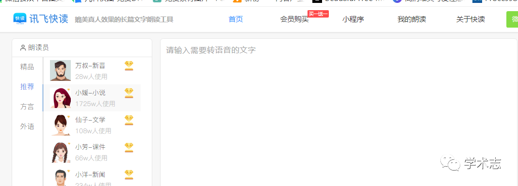 讯飞快读是科大讯飞旗下的文字转语音工具。