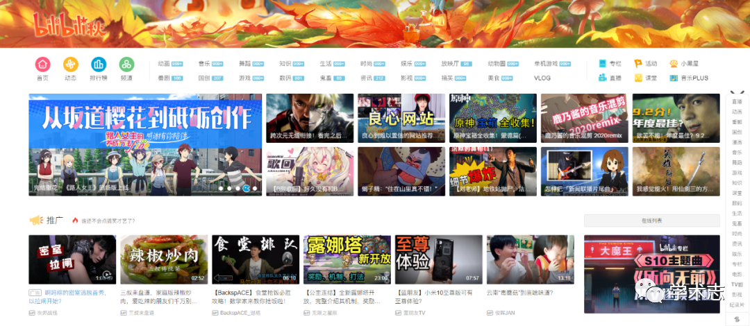 哔哩哔哩(英文名称:bilibili,简称B站)现为中国年轻世代高度聚集的文化社区和视频平台。目前拥有动画、番剧、国创、音乐、舞蹈、游戏、知识、生活、娱乐、鬼畜、时尚、放映厅等 15 个内容分区。生活、娱乐、游戏、动漫、科技是B站主要的内容品类并开设直播、游戏中心、周边等业务板块。