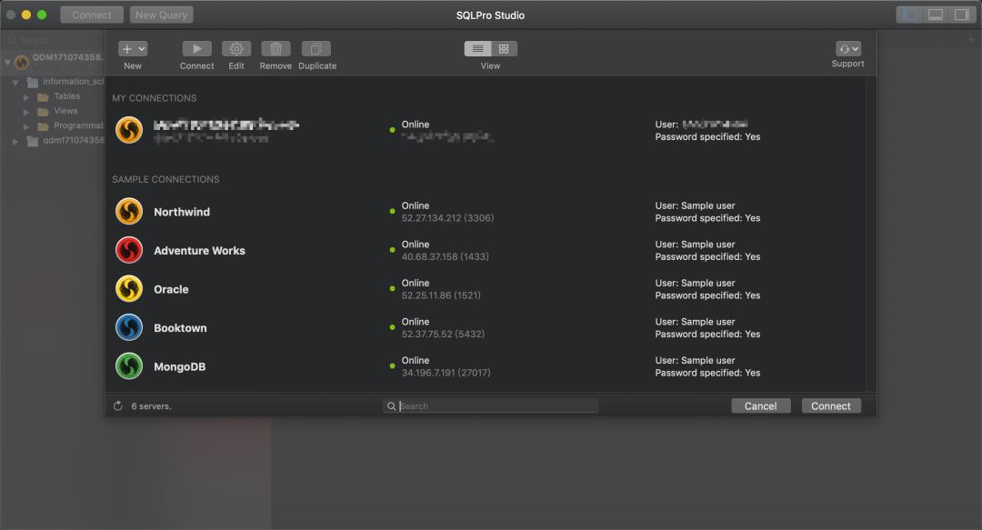 SQLPro Studio可以帮助我们在Mac电脑上实现数据库的可视化管理,目前支持SQL Server, Postgres, Oracle 以及MySQL等主流的数据库。