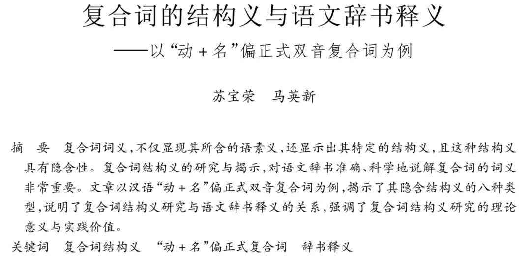 语文词典‧释义——复合词的结构义与语文辞书释义———以“动 + 名”偏正式双音复合词为例:苏宝荣 马英新