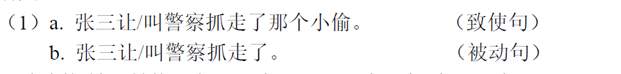 致使和被动是两种截然不同的句法结构,但在不同语言中均能观察到两种句式之间的转换现象。例如,朱德熙(1982)指出,汉语中的动词‘让’和‘叫’既可表致使义又可表被动义: