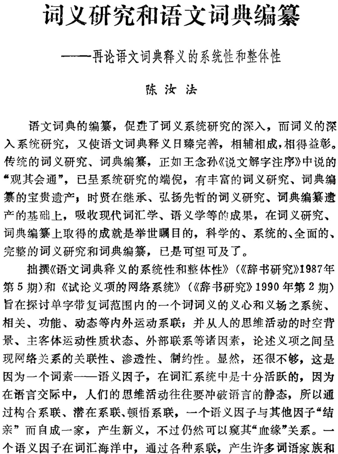 语文词典·释义——词义研究和语文词典编纂——再论语文词典释义的系统性和整体性:陈汝法