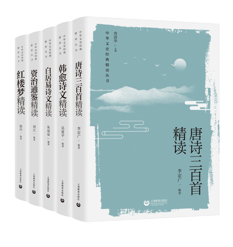 本套丛书由上海师范大学人文学院院长查清华主编,汇聚上师大十数位教授的集体智慧,他们都是该领域的专业研究者。他们根据中学生的阅读需求,精选书目、篇目,让中学生走近某一位诗人或某一部经典,获得深切的理解和体悟,并以期连接课堂内外,让经典润泽心灵,砥砺人生。本套丛书已出五种,包括《唐诗三百首精读》(李定广 编著)、《韩愈诗文精读》(吴夏平 编著)、《白居易诗文精读》(朱易安 编著)、《资治通鉴精读》(刘江 编著)、《红楼梦精读》(詹丹 编著)。