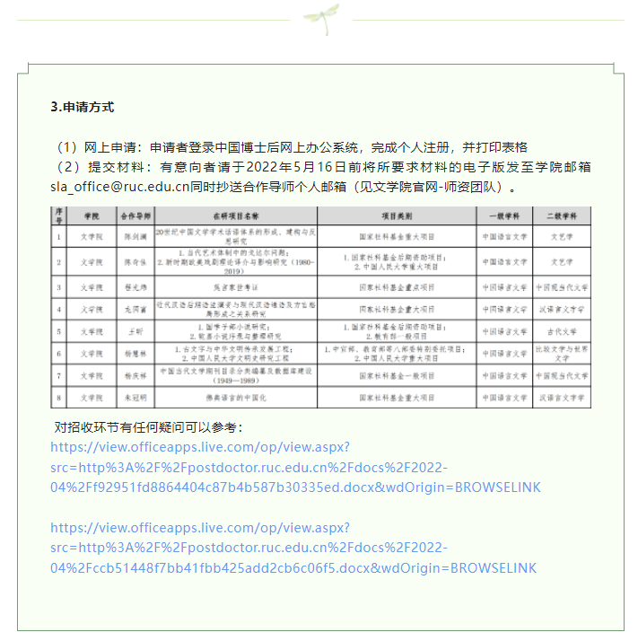 招 聘|中国人民大学文学院2022年博士后招聘