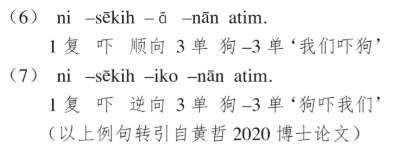 有些印第安语言的主语则要按生命度等级来定。低生命度名词即使是施事也只能当宾语,高生命度名词即使是受事也当主语。当施受关系与论元关系错位时,动词上要加逆 向标记,提示主宾语的施受关系须倒过来理解,即主语为受事,宾语为施事。如平原 Cree语(Wolfart,1973):