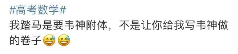 但等到考完数学的时候,考生却精准进行吐槽:“韦神我让你附体没有让你附卷子上”。