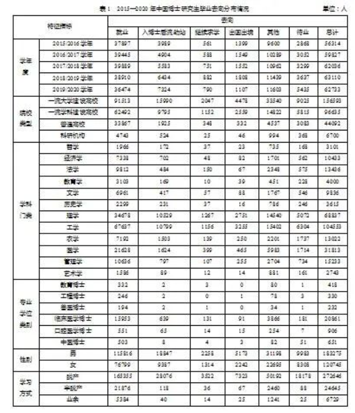 原标题:《我国博士毕业生去向及就业特征分析——基于2015—2020年博士毕业生数据的分析》