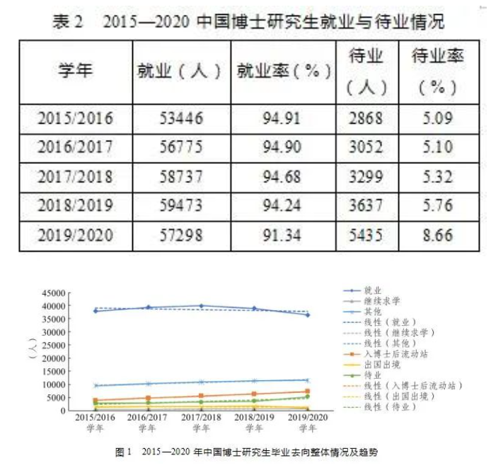 研究生教育作为我国高等教育的重要环节,承载着国家发展和民族振兴的重大历史使命。2020年,新冠肺炎疫情席卷全球,对我国经济发展和社会进步带来了巨大压力,严重冲击着我国就业市场,就业格局和就业模式发生深刻变化。特别是由于疫情直接导致部分企业倒闭,使得就业岗位减少,就业问题浮现。同时,随着研究生学历教育普及以及招生规模的迅速扩张,大量博士研究生毕业后进入社会就业市场,就业问题日益加剧。