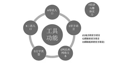 语言的定义有百余种,语言的功能也有很多,有工具功能、思维功能、文化功能等。但是衡量语言功能的指标,必须可以方便观察,方便获取数据。下面,我们从工具功能、文化功能两个方面来建立衡量语言功能的指标体系。