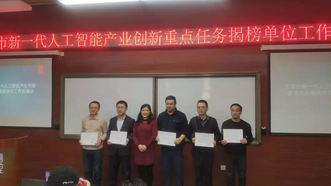 2020年1月19日,工业和信息化部“新一代人工智能产业创新重点任务入围揭榜名单”揭晓。北京语言大学联合国家专利局和中国标准化研究院等单位,获批工信部人工智能揭榜项目,成为知识版权保护技术的国家队。2019年11月14日,工信部发布关于印发《新一代人工智能产业创新重点任务揭榜工作方案》的通知,征集并遴选一批掌握关键核心技术、具备较强创新能力的单位集中攻关,重点突破一批技术先进、性能优秀、应用效果好的人工智能标志性产品、平台和服务。工信部科技司相关负责人解释说,工信部将通过开展人工智能揭榜工作,征集并遴选一批掌握关键核心技术、具备较强创新能力的创新主体,在人工智能主要细分领域,选拔领头羊、先锋队,按照 “揭榜挂帅”的工作机制,突破人工智能产业发展短板瓶颈,树立领域标杆企业,培育创新发展的主力军,加快我国人工智能产业和实体经济深度融合,促进创新发展。方案选择了17个方向及细分领域。具体来看,在智能产品方面,选择智能网联汽车、智能服务机器人、智能无人机、医疗影像辅助诊断系统、视频图像身份识别系统等产品作为攻关方向。在这些领域,产业创新活跃,已聚集了大量企业,相关技术和产品具有较好发展基础,通过“揭榜挂帅”,可进一步促进其深入应用落地。在核心基础方面,选择智能传感器、神经网络芯片、开源开放平台等开展攻关。这些核心基础技术是人工智能产业发展的重要支撑,我国目前发展相对薄弱,亟待加速突破,整合产业链资源开展协同攻关,加快实现技术产业突破。在智能制造关键技术装备方面,选择智能工业机器人、智能控制装备、智能检测装备、智能物流装备等进行揭榜攻关。制造业是人工智能融合创新主要领域之一,充分发挥人工智能在产业升级、产品开发、服务创新等方面的技术优势,有利于加快制造业关键技术装备智能化,促进中国制造业高质量发展。在支撑体系方面,选择高质量的行业训练资源库、标准测试、智能化网络基础设施、安全保障体系等作为揭榜攻关任务。这些资源体系是影响人工智能健康发展的重要要素,需要加快完善基础环境、保障平台,加快形成我国人工智能产业创新发展的支撑能力。原则上,在17个方向及细分领域择优遴选不超过5家揭榜单位,择优公布揭榜成功单位不超过3家,树立人工智能领域标杆。根据工业和信息化部《新一代人工智能产业创新重点任务揭榜工作方案》,本次揭榜工作旨在征集并遴选一批掌握关键核心技术、创新能力强、发展潜力大的企业、科研机构等,树立人工智能领域标杆,培育AI创新发展的主力军,进而形成龙头带动、万船齐发的局面,构建良好的产业发展生态。百度成为上榜项目最多的企业,也展现了其在AI领域全面的技术布局,以及在AI关键核心技术方面的强大创新实力。