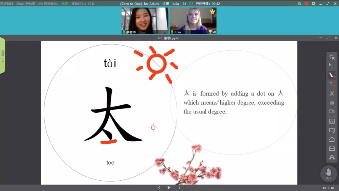 1. 根据教研部课程规划,和其他教研小伙伴一起研发各个系列课程;(目前的课程体系面向3大类群体:华裔青少儿、外国青少儿和外国成人学员)