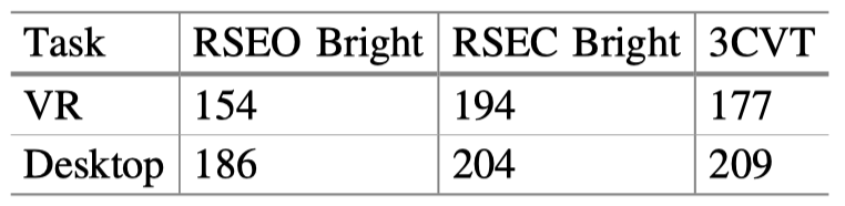 Fig. 9. Target effect for VR and Desktop 3CVT