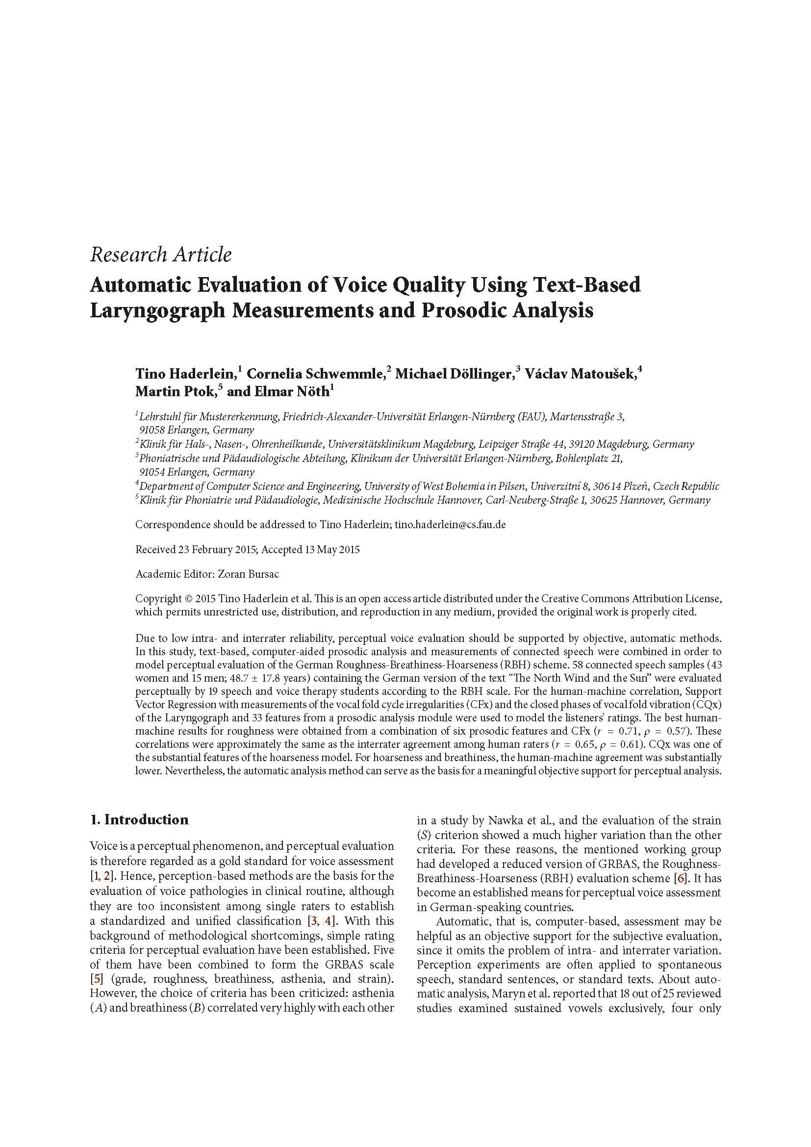 Automatic Evaluation of Voice Quality Using Text-Based Laryngograph Measurements and Prosodic Analysis