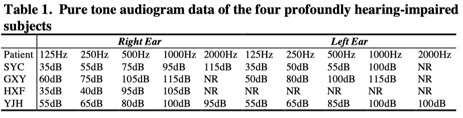 More hearing-impaired people with profound hearing losses are needed to be tested in order to evaluate the speech pattern element method for Chinese deaf people. It seems highly possible that there will be great differences between different hearing-impaired people. Prelingually deaf people are not suitable for comparison experiment like this study.