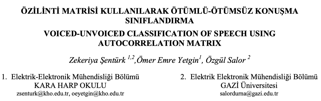 [1] Fisher, E., Tabrikian, J., Dubnov, S., "Generalized likelihoodratio test for voiced-unvoiced decision in noisy speech using the harmonic model," IEEE Transactions on Audio, Speech, and Language Processing, vol.14, no.2, pp. 502- 510, March 2006.